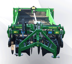 - حفار بطاطس ذو تصريف خلفي مركب على الجرارات ومجهز بوصلة ثلاثية النقاط.