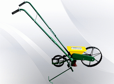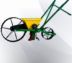 - Single-row manual sowing and dibbling machine with height-adjustable coulter, equipped with drag lever to close the seed furrow, Adjustable marker to mark the next seed row, With 3 seeding discs with a total of 39 different hole sizes, the device is suitable for sowing almost any seed, from alfalfa to corn.